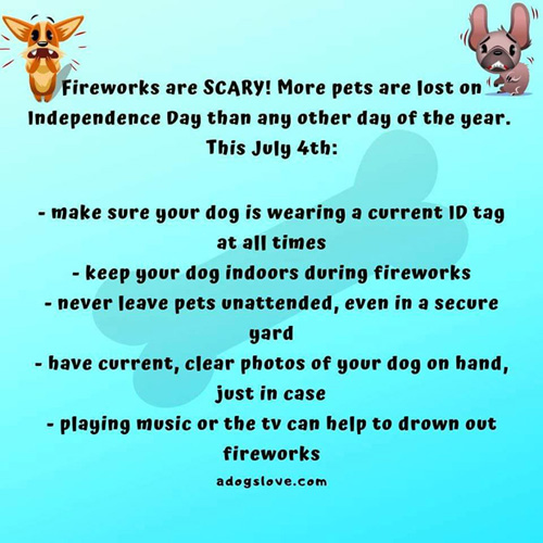 While we’re happily gearing up for our July 4th celebration, please, please take a few moments and make sure your pets will be safe, happy, and as relaxed as they can be when fireworks start going off!